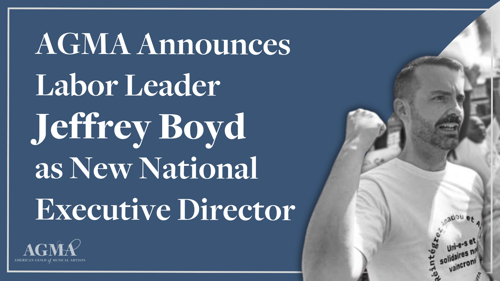 “AGMA represents the very best of the performing arts and labor movement—a commitment to both artistic excellence and workers’ rights. I am thrilled to unite my two lifelong passions and to work alongside AGMA leaders, members, staff, and sibling unions to ensure the arts industry lives up to its values,” stated incoming National Executive Director Jeffrey Boyd.