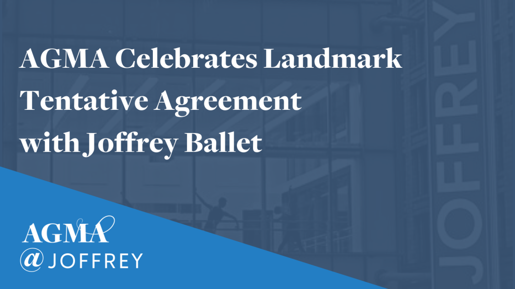 NEW YORK CITY/CHICAGO – 04/21/2022 – The American Guild of Musical Artists (AGMA) and the Joffrey Ballet reached a new five-year collective bargaining agreement, beginning July 1, 2022, and running through June 30, 2027. This is currently a tentative agreement, pending ratification by the AGMA Board of Governors.