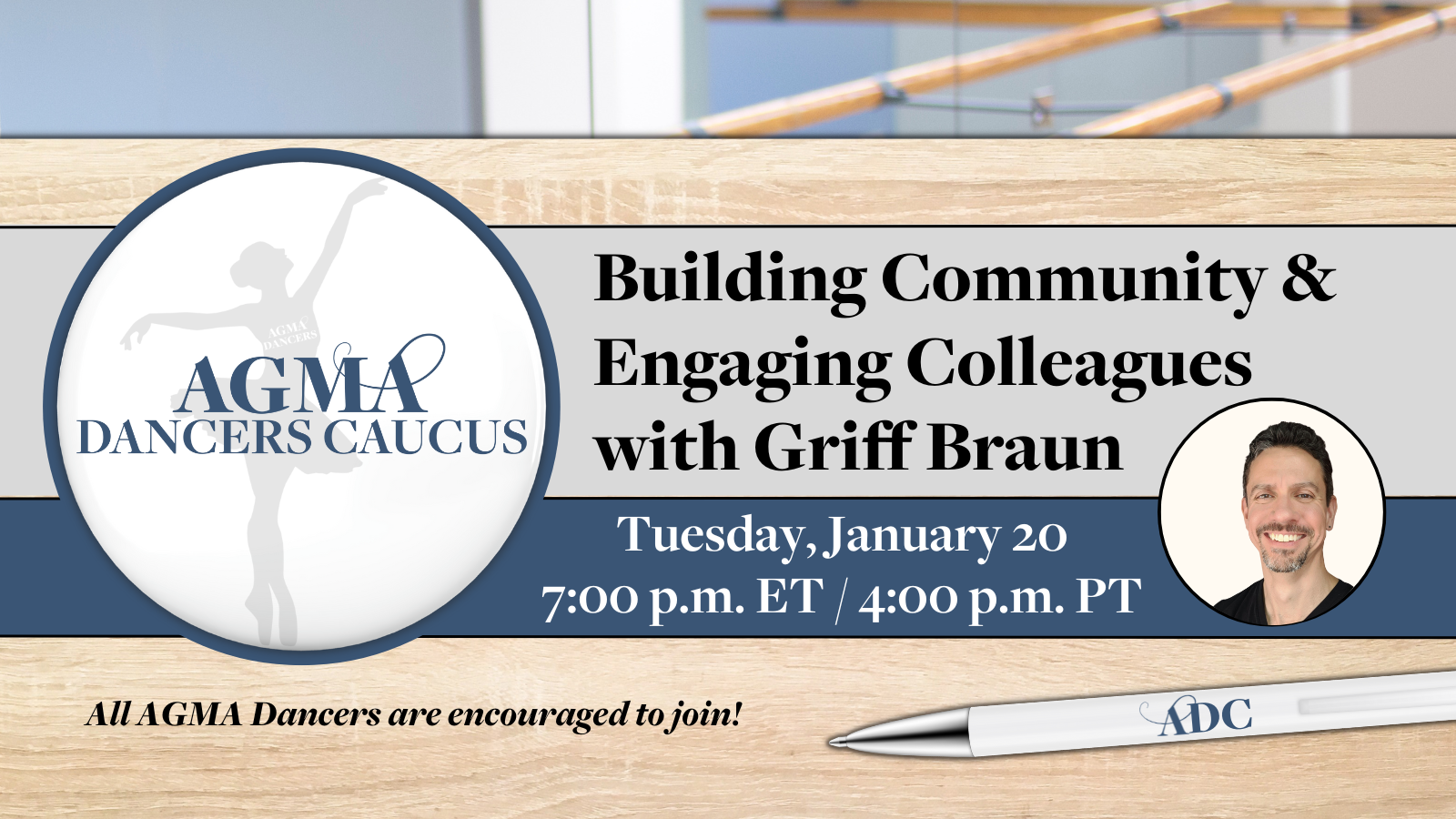 Our guest speaker will be Griff Braun, former AGMA dancer and AGMA’s National Organizing Director, who will share insight into how organizing works and how dancers can play an active role in strengthening our union.