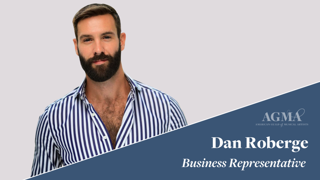 Dan Roberge (he/him/his) recently joined AGMA as a Business Representative. A multifaceted arts and entertainment leader, he has held various titles across both art forms, including artistic advisor, rehearsal director, choreographer, producer, and consultant, and was a former leading dancer with The Washington Ballet under the direction of Julie Kent.