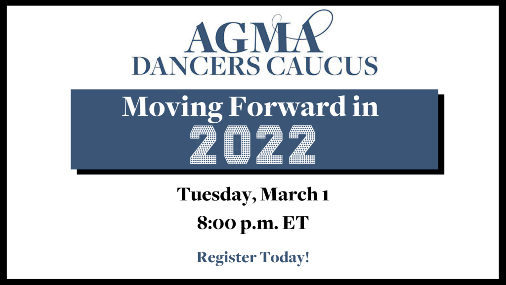 REMINDER! The next Dancers Caucus Meeting is on Tuesday, March 1, at 8:00 p.m. ET. The topic for discussion will be “Moving Forward in 2022.”