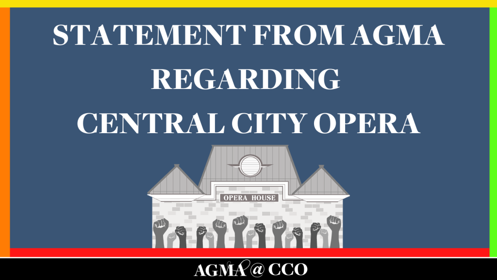 As for AGMA, we are still ready to bargain in good faith, as we have done at every step of this process, and we’re proceeding with arbitration for the artists still owed more than $12,000. Central City Opera: pay your artists, stop union busting, bargain a fair contract, and create a safe and equitable workplace.