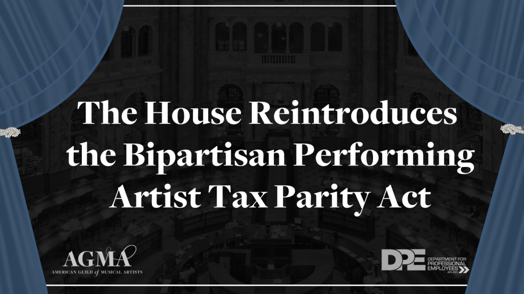 AGMA is ecstatic over the reintroduction of the bipartisan Performing Artist Tax Parity Act (PATPA).